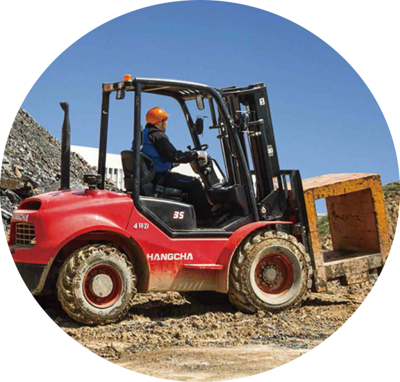 Le chariot élévateur tout terrain Hangcha 2,5/3T, compact et résistant, est équipé d’une transmission à deux ou quatre roues motrices. Il est doté d’une motorisation diesel CUMMINS. Sa transmission hydraulique à suspension dotée de deux vitesses avant et une arrière, garantie d’excellentes performances et une capacité de gravissement importante. Les essieux sont renforcés et l’équipement pneumatique est à profil agraire. Le pont et les freins sont renforcés et il est équipé d’un différenciel avant automatique. L’essieu de direction résistant assure une traction optimale, notament sous la pluie ou sur des terrains difficiles.
