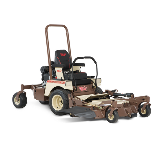 Les tondeuses frontales Grasshopper disposent d’une unité motrice à 3 ou 4 roues avec un plateau de coupe devant le siège de l’utilisateur. Elles disposent de roues pivotantes simples ou doubles situées à l’arrière du moteur.
